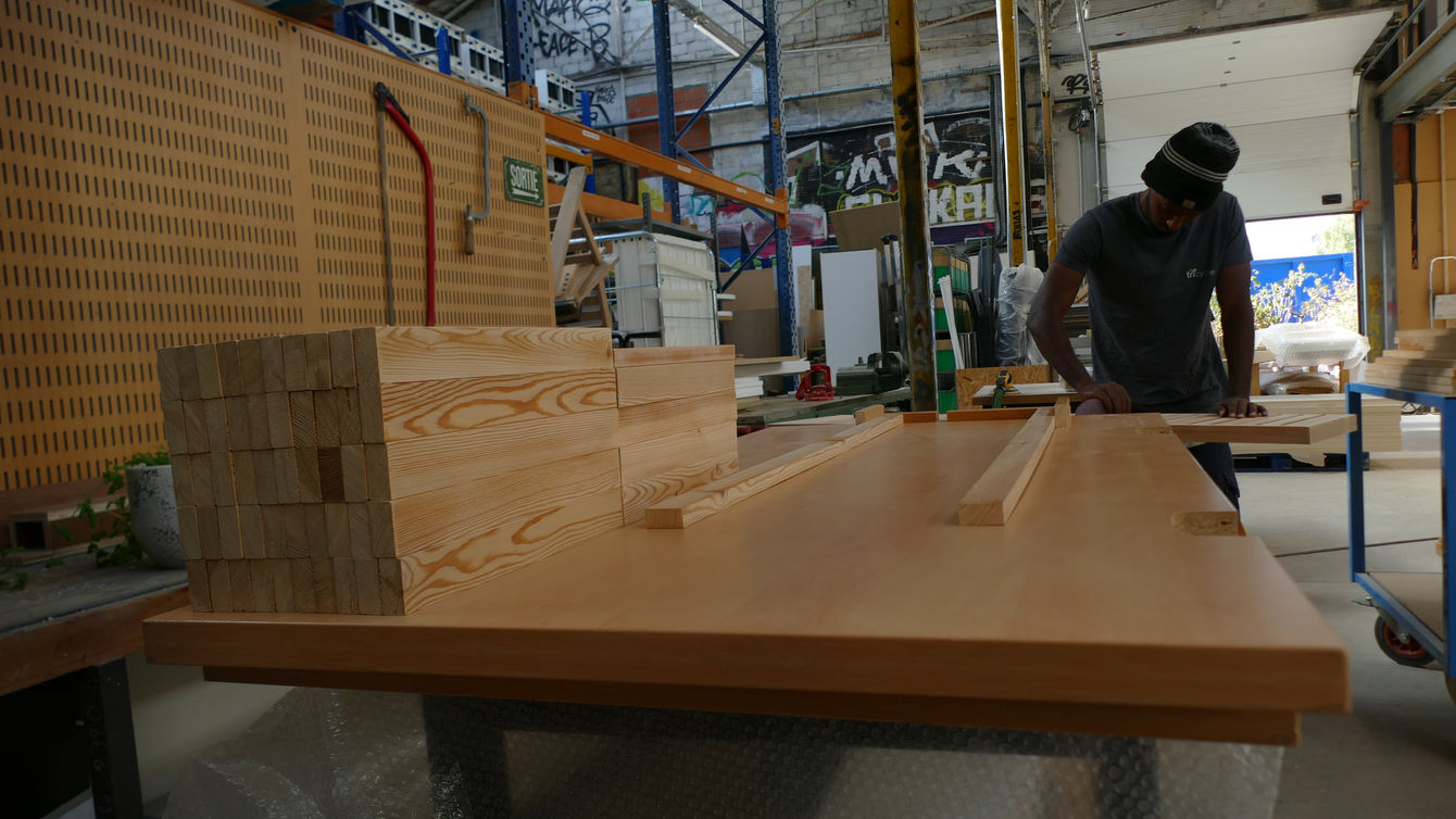 Afin de s'inscrire davantage dans une volonté d'éco-conception, son design a été contraint dès sa conception par le choix et la taille du matériau : du bois issu de réemploi. Imaginé en collaboration avec l’atelier Gepetto, un entreprise fabricant du mobilier upcyclé, Arca est fabriqué essentiellement avec du bois récupéré chez des partenaires en région parisienne. Considéré comme « déchets », ces gisements sont retravaillés pour permettre de fabriquer les éléments de la gamme.