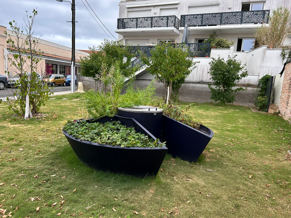 Idylle revisite ce concept de "Keyhole" de façon ergonomique et esthétique, pour créer des potagers ou des oasis fleuries dans les jardins partagés. Une solution combinant compostage et jardinage pour une production saine, partagée, économique et à portée de main pour tous ! Un bon moyen de créer des interactions et de sensibilisation sur les enjeux sociaux, économiques et environnementaux actuels.
